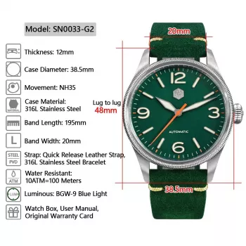 38.5mm Retro Automatic Pilot Watch with Sapphire Crystal & Coin Bezel