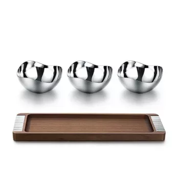 Luxury Nordic Stainless Steel Dessert Plate with Walnut Tray