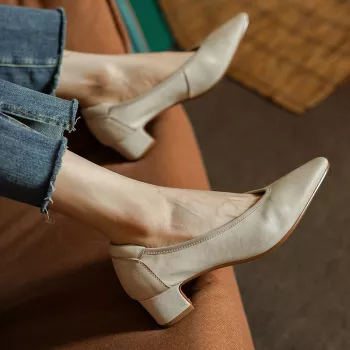 Women's Genuine Leather Retro Office Pumps – 4cm Square Heel Slip-On
